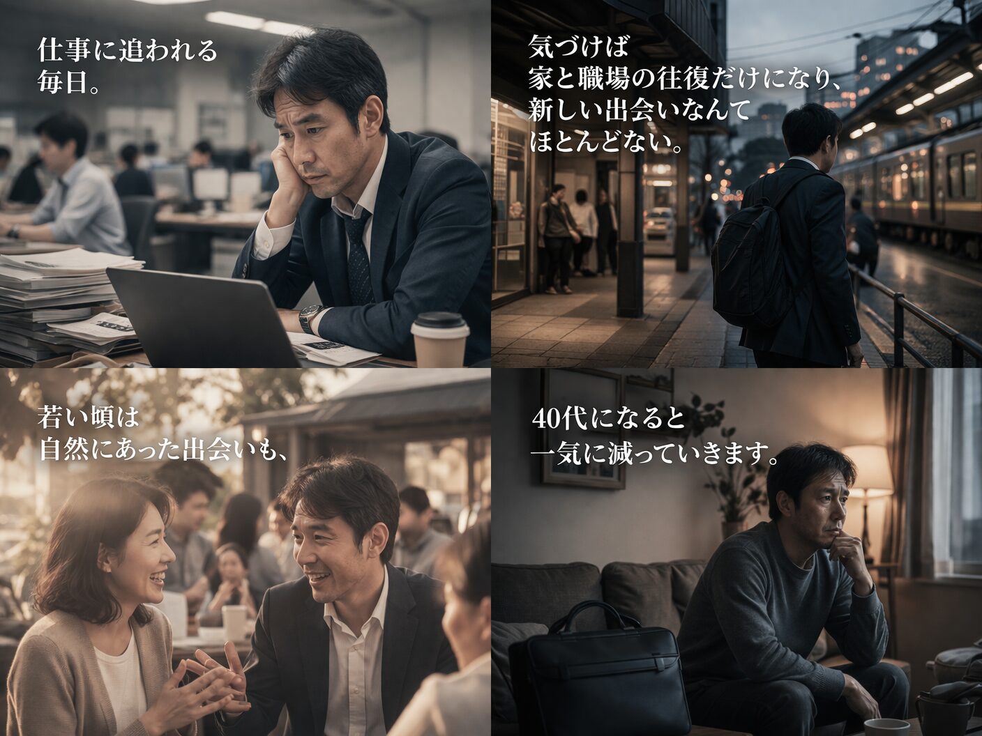 40代男性 「気づいたらもう40代…」「仕事と家の往復で出会いがない」 こんなふうに感じている方いらっし…